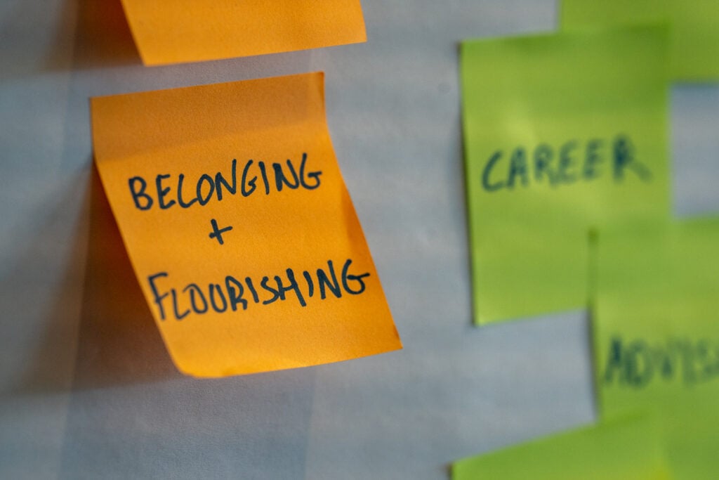 As I was talking with students about the lofty ideals of vocation and discerning their callings, they were simply trying to survive in a period of upheaval and uncertainty. I realized that I needed to shift my goals and focus on more immediate priorities. During the pandemic, I came to see that we all needed a different vision and skills to thrive in times of uncertainty. I refined this vision over the next two offerings of the course, asking students to become comfortable with not knowing how to answer the question: what are you going to do after graduation? Instead, I asked them: what do you value about yourself? What are you unlearning? What practices and skills have helped you get through difficult times before? What sustains you in times of struggle?